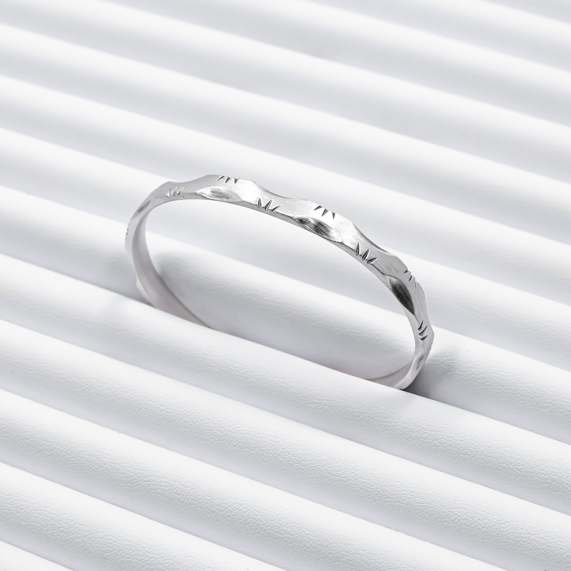 A statement of raw elegance and enduring strength. The hand crafted Forged Silver Cuff is inspired by precise geometric structures, translated into solid sterling silver through traditional craftsmanship. Every ridge and facet is intentionally formed by hand, making each ring truly one of a kind.